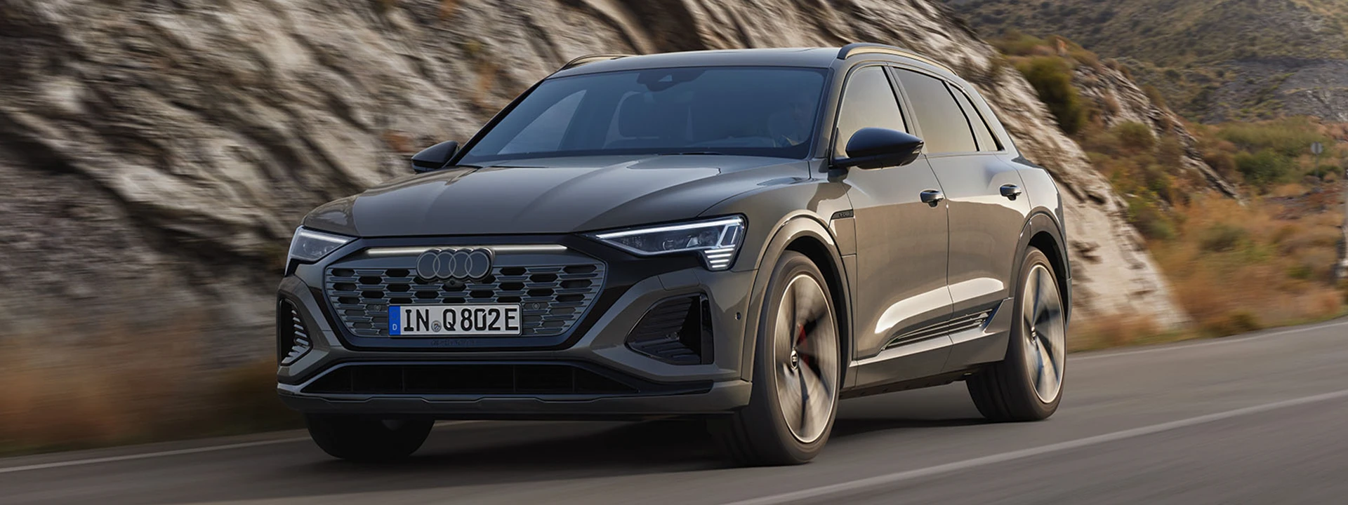 O novo Audi Q8 e-tron destaca-se pela dinâmica de condução. Os vários modos de condução da suspensão a ar adaptativa, seja por eficiência ou esporte, pode ser facilmente definido através do Audi drive select. As características dinâmicas laterais melhoradas também ajudam a melhorar o comportamento da direção e nas curvas.